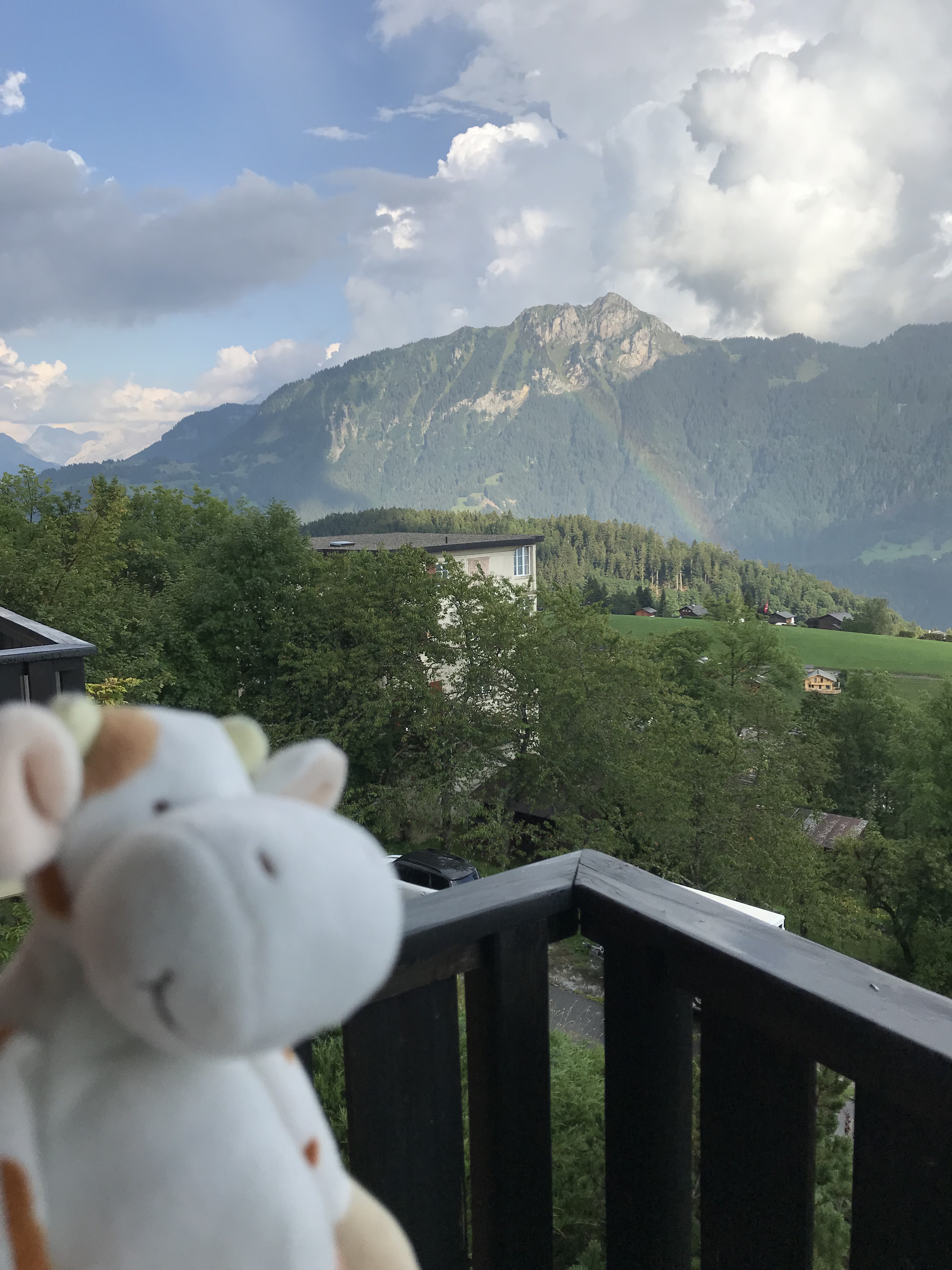 There is no pot of gold at the end of the rainbow, but a pot-bellied stuffed cow who reminds me to look out the window and see the beautiful things before me. And to take an umbrella.