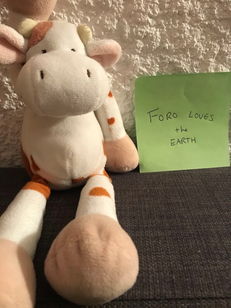 My friend’s daughter is quite depressed about the climate, many species dying off and pollution everywhere. My beloved Foro is part of the problem. He was sent over from China, and resources used to make him and ship him could probably have been better used for something else. In addition, his real world cousin is the cause of green house gases no matter how the cow spends her life.