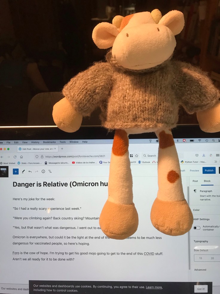 Foro is the cow of hope. I’m trying to get his good mojo going to get to the end of this COVID stuff. Aren’t we all ready for it to be done with?