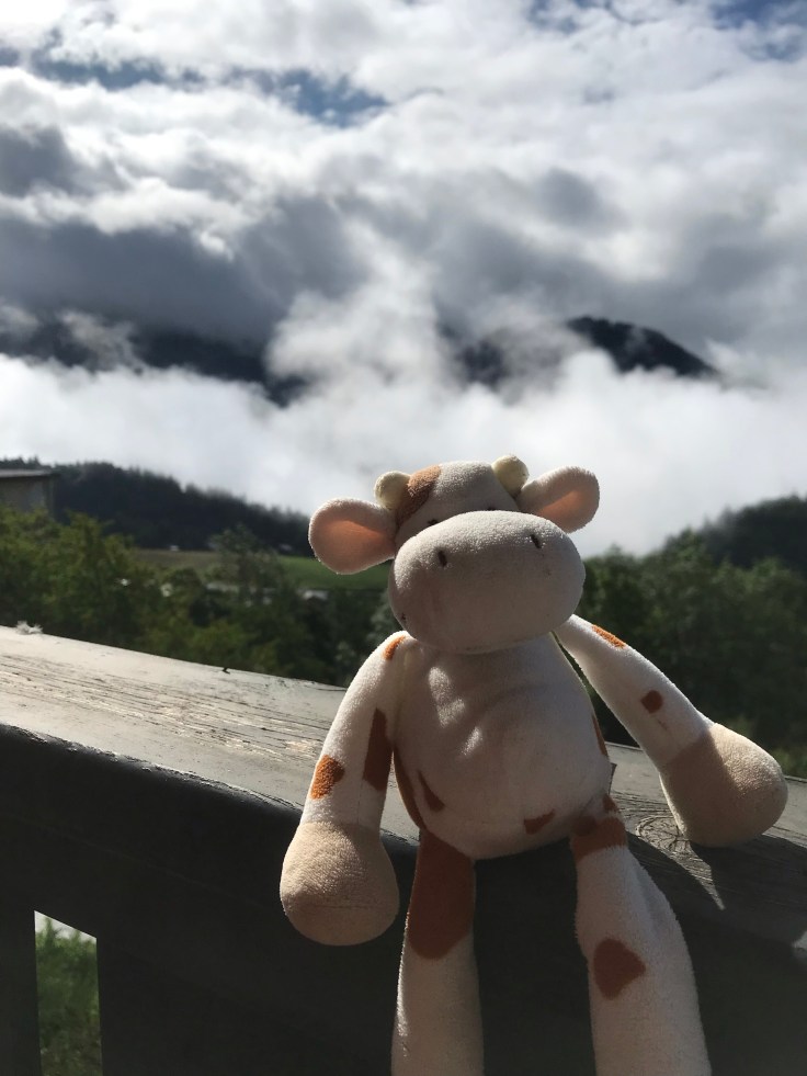 Many things are uncomfortable, but there is so much to look forward to. Today my home is giving me a cloud show (it’s been rainy, but is clearing up and it’s beautiful to watch. Foro is, of course, coming with me. I’m leaving a “Forina” here as a watch cow, to guard the place. She’ll keep this place full of good vibes.