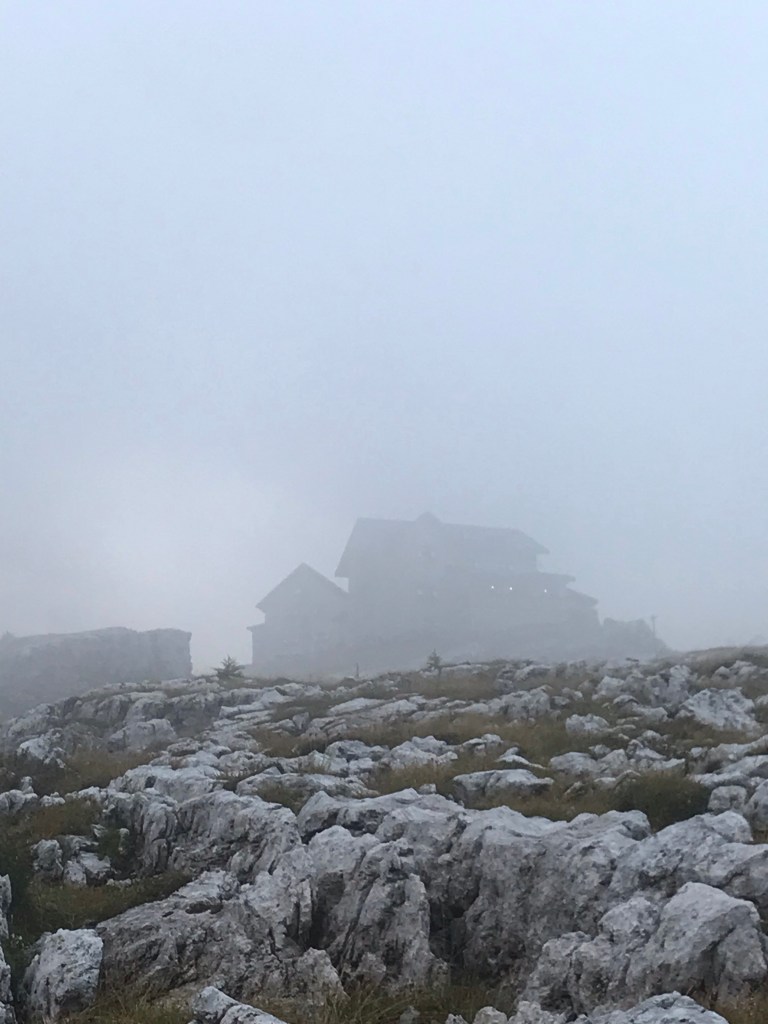 We came up in a slight drizzle, and have seen nothing, and I mean nothing, of the ambiance around here. We assume that there are cliffs to climb, but for the moment it’s entirely theoretical.