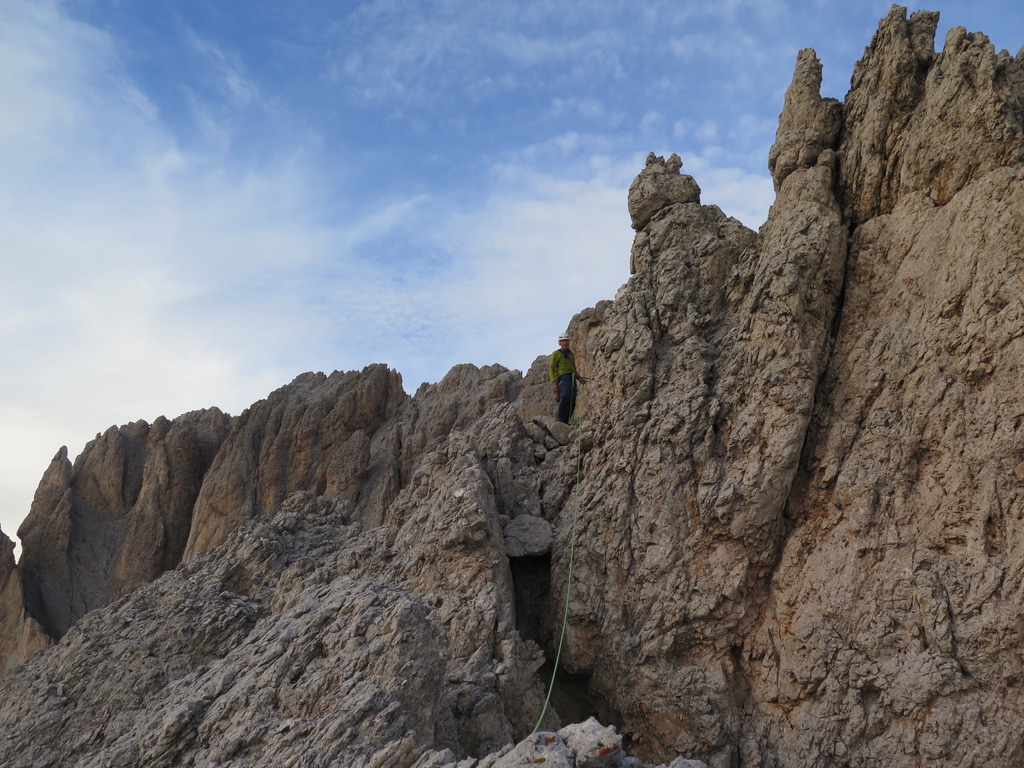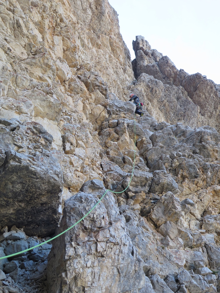 About half the pitches had excellent Dolomite rock, but the other half was semi-rotten which didn’t encourage speed climbing, even if I’d been capable.