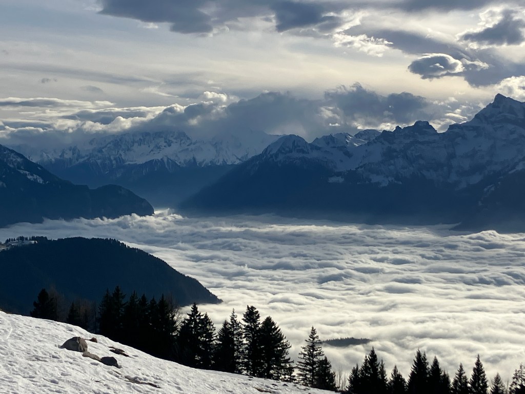 I have some free time before my partner and I head south for a few days. I would like very much to have finished a few projects before going, so we’re both hanging out in our own homes for the moment. And I’ve taken the time to go for a few walks. For a while I was having these foot problems so it wasn’t really the best thing to do, but now I want to build up the ability to hike again. I’m more or less in shape (see “going to the weight room/swimming” previously!) but every activity is specific. Walking is different but oh geesh does it do me good! Just hearing birds, the few that stick around this time of year, seeing the dried leaves poking out from the snow, beautiful green pines trees, all of that fills my heart and soul with peace. And the sky, oh the sky! There’s no other words for it.. It’s just fantastic.